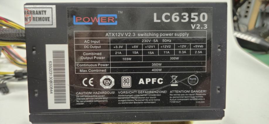 Napajalnik LC Power Super Silent LC6350 V2.3 hladi tih ventilator premera 12 cm, ki se uravnava glede na temperaturo. Odlikujeta ga tudi aktivni PFC in Silent Power tehnologija, ki zagotavljata porabo manj kot 1W v stanju pripravljenosti. 80Plus certifikat zagotavlja učinkovitost do 85,18%.