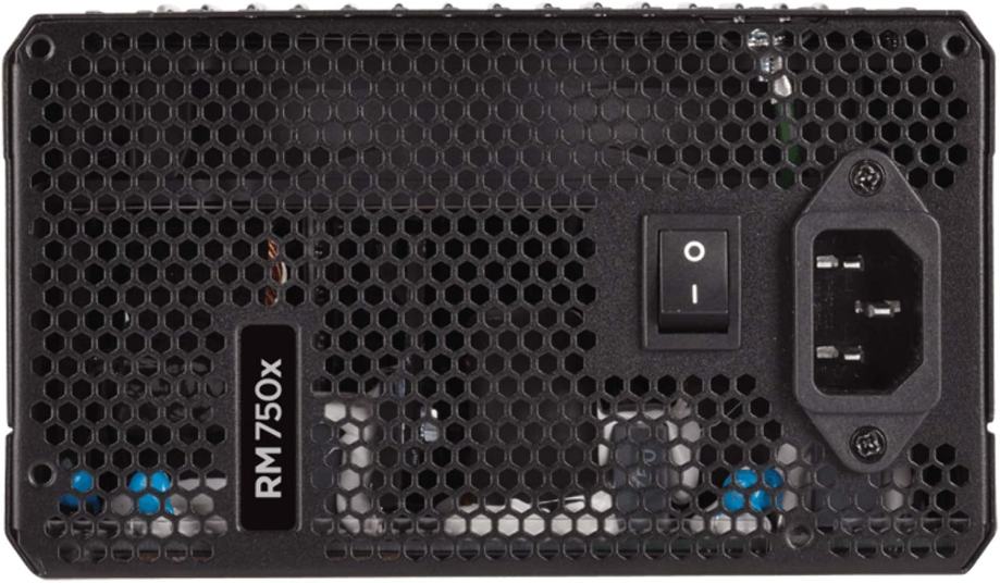 Kakovost napajalnika CORSAIR RM750× izkazuje certifikat 80Plus Gold, ki je namenjen komponentam z visoko stopnjo učinkovitosti in nizko stopnjo energijske porabe. Modularna oblika z 12V linijo kar precej izboljša upravljanje s kabli. Napajalnik hladi tih, 135-milimetrski ventilator, ki se prilagaja obremenitvi in se vključi šele ob obremenitvi 300 W.