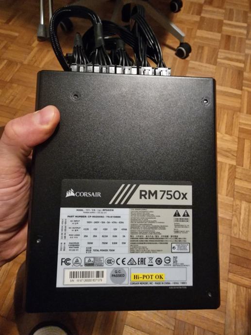 Prodam napajalnik Corsair RM750x – 750 W, 80+ Gold
