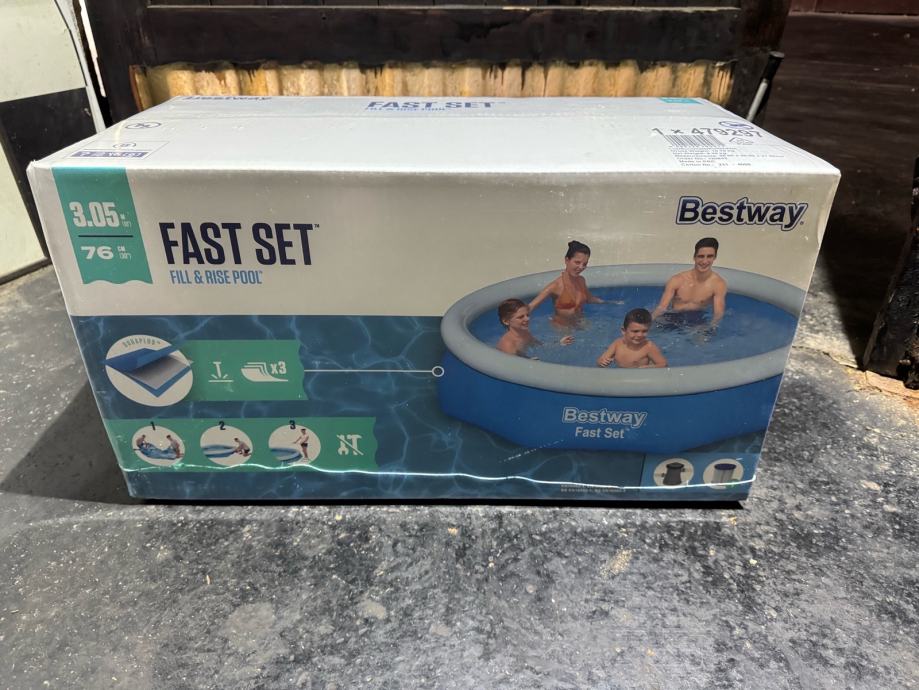 Nov, zapakiran napihljiv bazen z filtrom. Premer je 3m