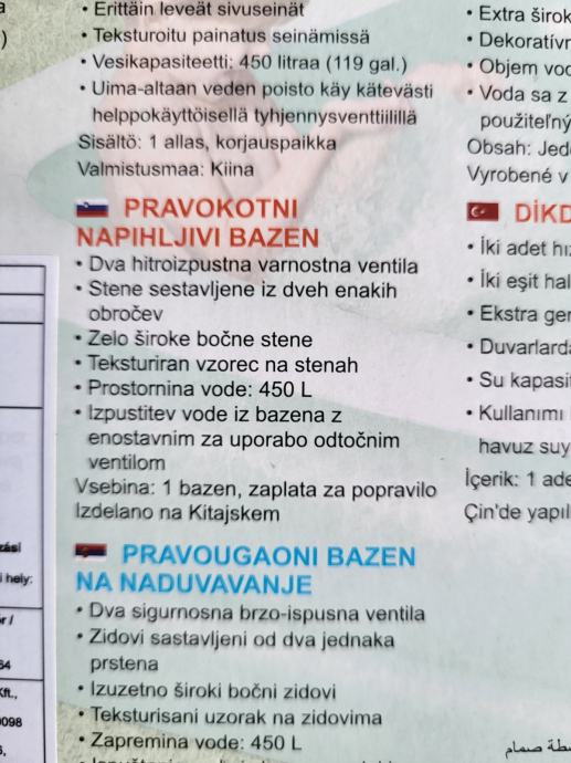 Dimenzije 2 x 1,46 x 0,48m in prostornine 450 litrov. Podrobnejše informacije so razvidne iz priložene fotografije.