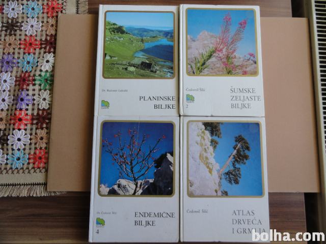 Knjige PRIRODA JUGOSLAVIJE , 4 KNJIGE KOMPLET (ATLAS DRVEĆA I GRMLJA, PLANINSKE BILJKE, ŠUMSKE ZELJASTE BILJKE, ENDEMIČNE BILJKE), v srbohrvaškem jeziku, trde platnice, dobro ohranjene, samo v kompletu 4 knjige za 20 eur.