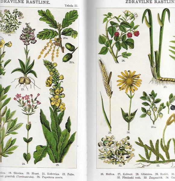 4. ZELIŠČA V PODOBAH - ZDRAVILNE, STRUPENE RASTLINE, okoli 1910, vezava v karton, 16 strani barvnih ilustracij - 25 eur
