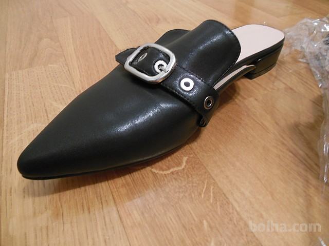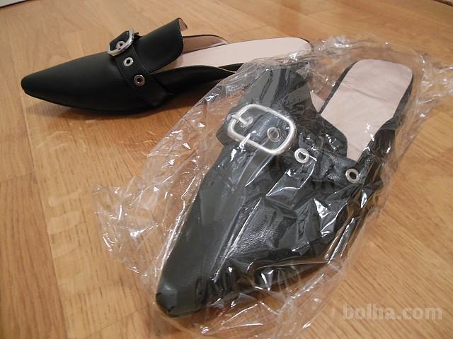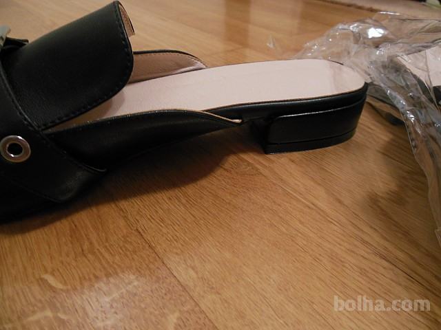 Natikački so črne barve, št. 40, z okrasno zaponko/šnalco, izredno mehki, prijetni za nosit.