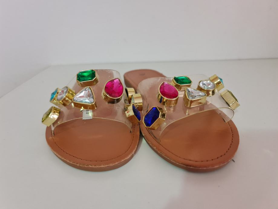 Poletna obutev z svetlikajočimi kamencki. Novo. Velikost je št.40. Dobljeno za darilo ni čisto moj stil. Cena: 12€+ppt
