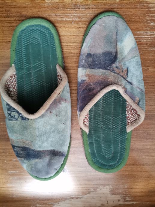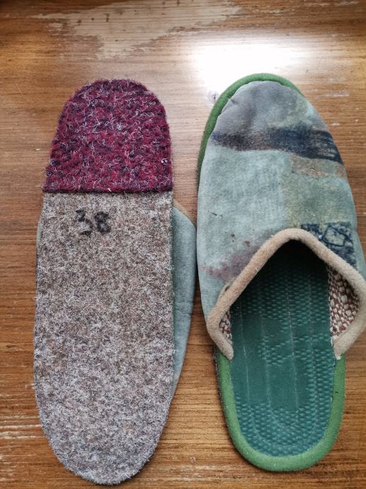 Prodam doma ročno izdelane udobne copate uniseks iz debelega blaga, debelega filca za mrzla tla, so mehki in udobni ter topli, zelo trpežni za nekaj let in pralni. Številka 38, barva zelena, pisana kot na sliki. Imamo več podobnih copat, če bi želeli več številk poglejte ostale oglase.