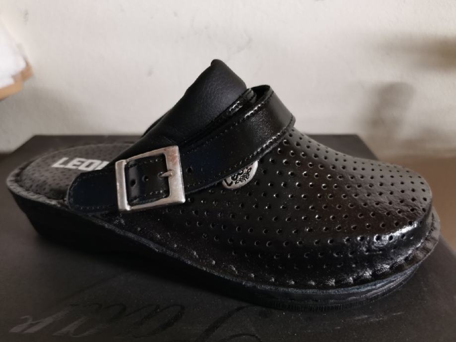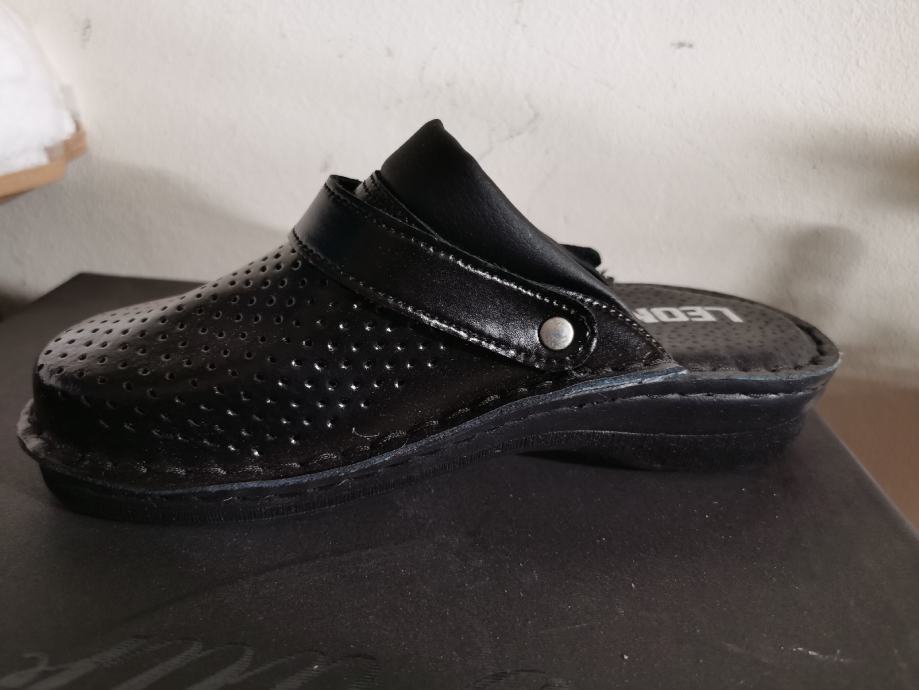 Prodam povsem nove usnjene natikače Leon Klompe, velikost 36. Mehak usnjen vložek, lahko se nosi kot sandal.