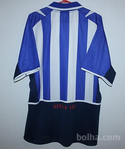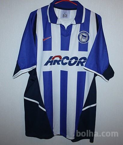 Dres Nike Hertha BSC 2002/2004. Zelo dobro ohranjen, rahlo zbledel sponzor, velikost XXL (bolj XL).