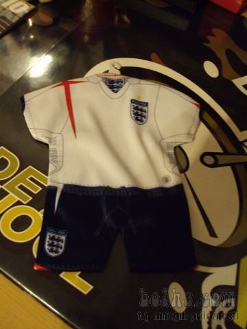 Prodam mini dres ANGLEŠKE NOGOMETNE REPREZENTANCE, ki je bil kupljen v Angliji v Londonu. Dres je kot nov in sicer izgleda kot bi ga pravkar kupili v trgovini in se ga v Sloveniji ne dobi. Namenjen je vsem tistim, ki ste navijači angleške nogometne reprezentance in zbirate navijaške stvari ali pa samo za prosto razstavo ali za karkoli drugega po vaši želji. Zraven dobite še mali obešalnik s katerim lahko dres obesite kamor želite ali pa ga po želji tudi odstranite.