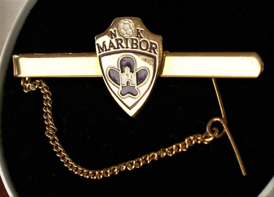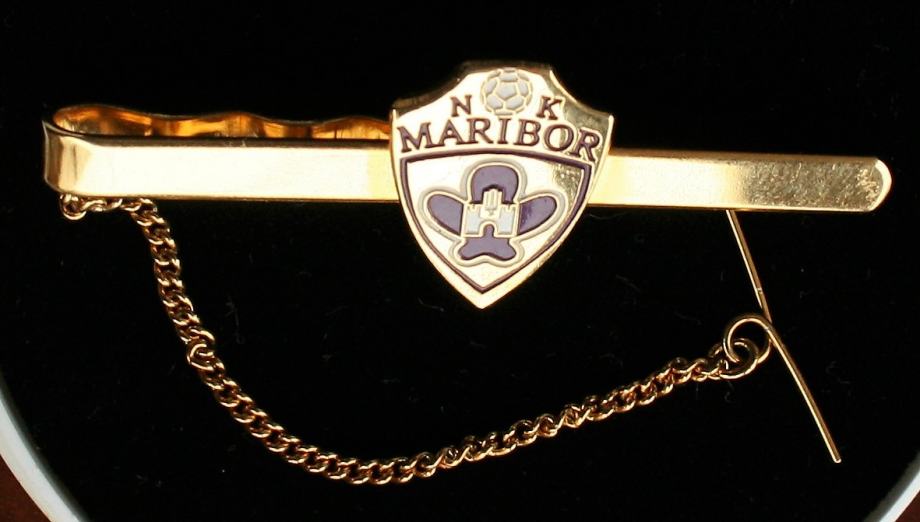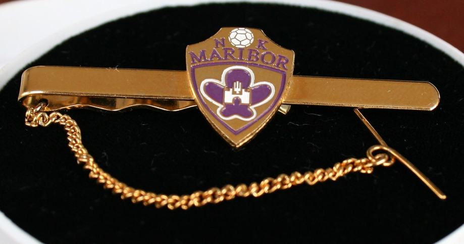 Zaponka za kravato z logotipom NK MARIBOR pozlačena, zelo redko, nenošena, zelo kvalitena izdelava, za gospode s kravato - "MARIBOR - ŠAMPION"!