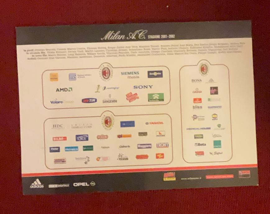 Prodam promocijsko razglednico AC Milan iz sezone 2001/2002, dimenzija 24x17cm. Za zbiralce. Ogled in prevzem Ljubljana Center. Cena po dogovoru. Pokličite 031382828.