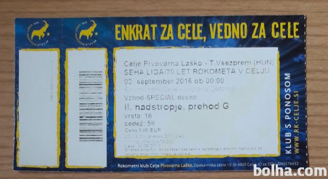 Rokometna vstopnica RK Celje Pivovarna Laško SEHA liga