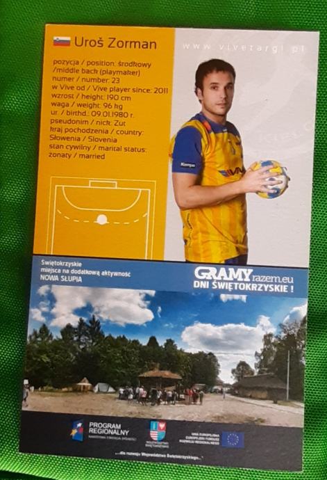 Uroš Zorman Rokometni klub Kilce Poljska 2013/2014 original avtogram