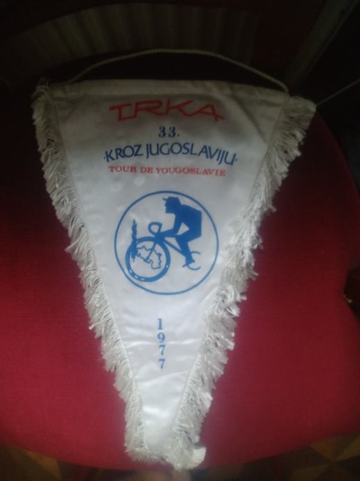 Prodam vintage promocijsko zastavico Kolesarske dirke po Jugoslaviji, ki je bila izdana v obdobju Jugoslavije leta 1977. Ogled in prevzem Ljubljana Center. Cena po dogovoru. Morebitno poštnino plača kupec. Pokličite 031 382828.
