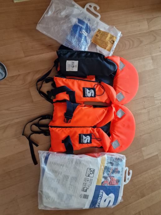 Prodam praktično nerabljene rešilne jopiče Secumar, 2x velikost 20-30kg, 1x 15-20 kg. Prodam posamezno za 40€ po komadu ali v paketu za 100€.