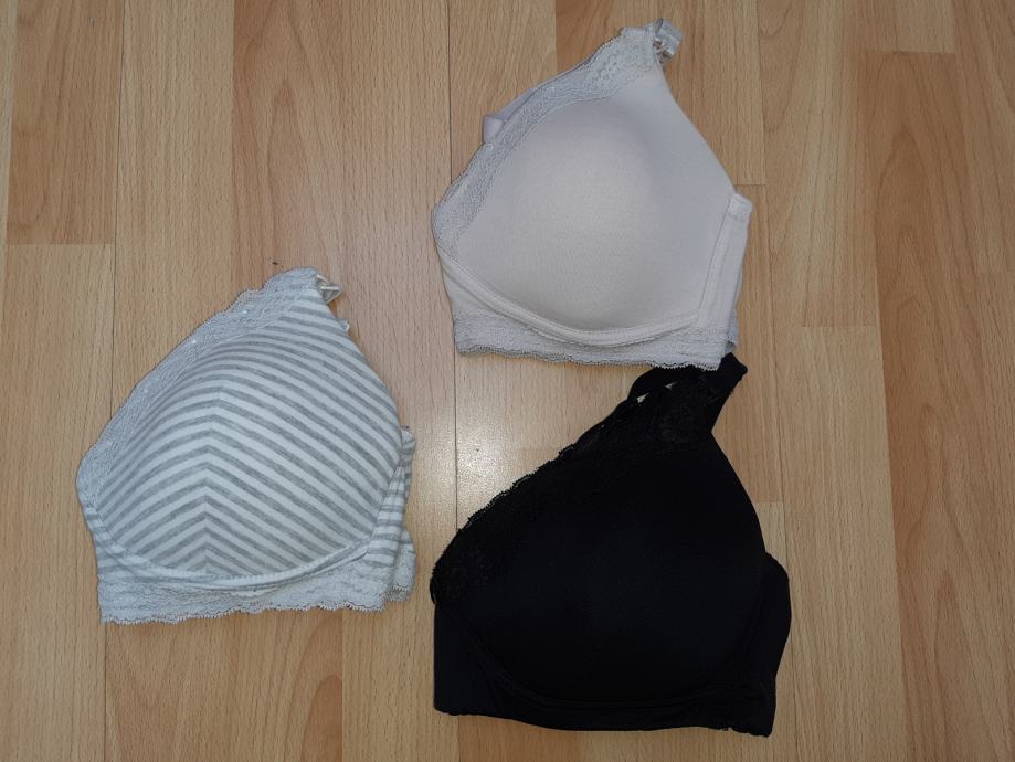 Prodam komplet 3 modrcev za dojenje znamke H&M. Svetla dva sta v velikosti 80C, črn pa 85C. Vsi trije so rahlo podloženi.