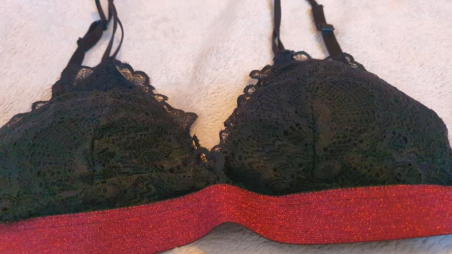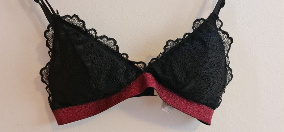 Nov čipkast nedrček v črno-rdeči barvni kombinaciji.