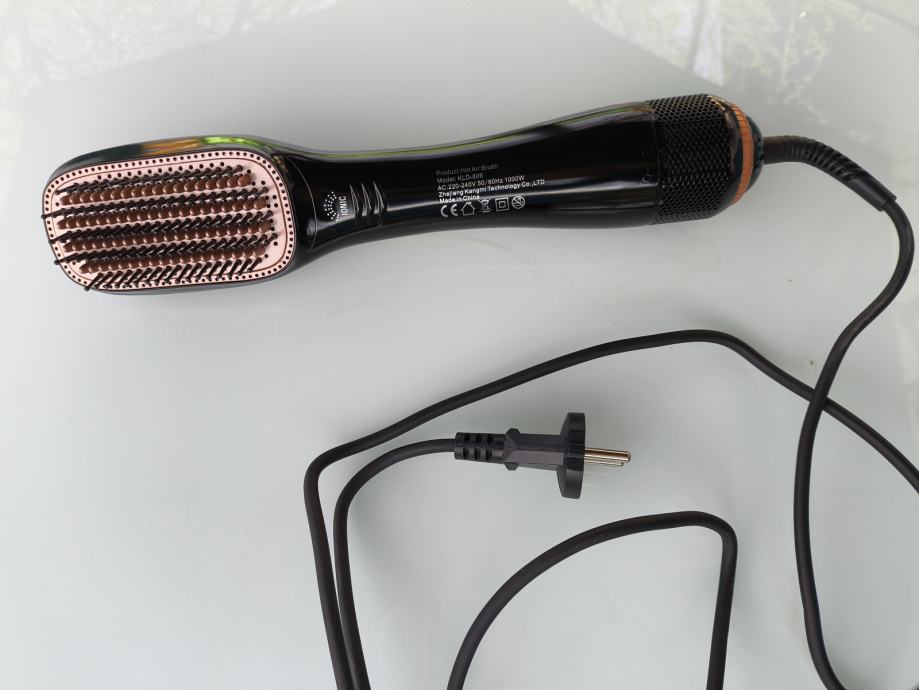 Prodam sušilec, s katerim se hkrati počeše daljše lase - s tem se jih oblikuje, lahko so bolj ravni, z drugačnim načinom uporabe pa lahko tudi bolj skodrani.