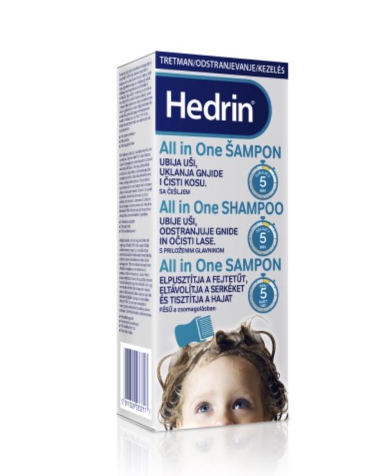 Prodam nov šampon Hedrin s priloženim glavnikom.