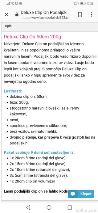 Prodam Deluxe Clip on podaljške, 200 g, črne barve.