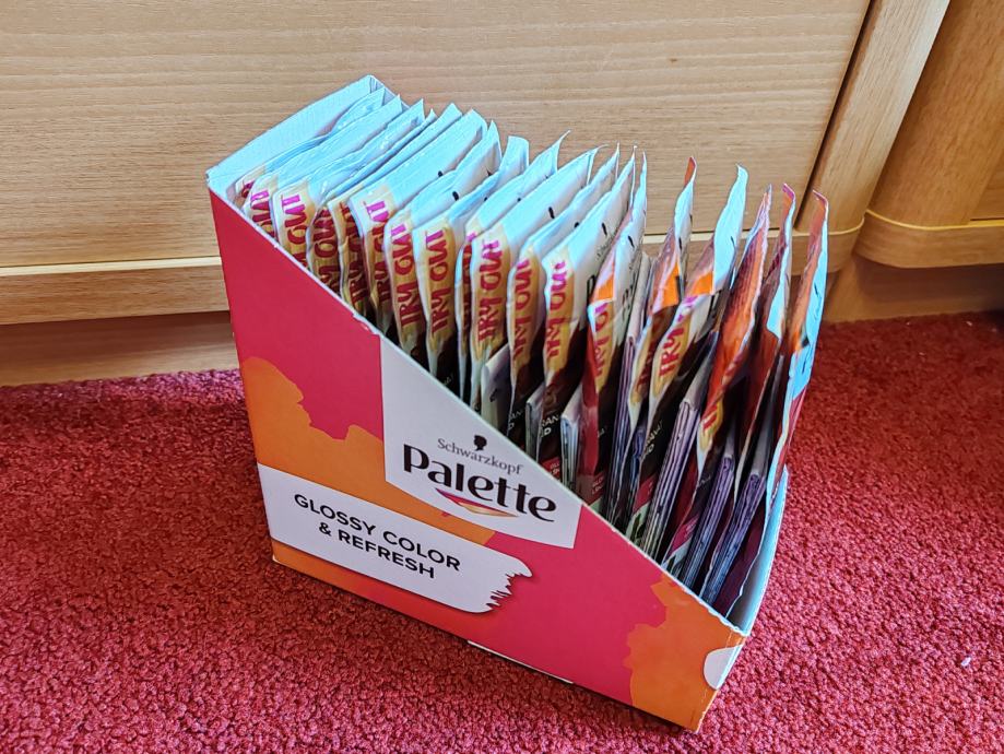 Prodajam 18 vrečk rdečega preliva za lase brez amonijaka, ki se v Sloveniji od letos ne dobi več. Originalna cena na vrečko je bila 1,89 EUR. Vrečke so zapakirane in nedotaknjene.
