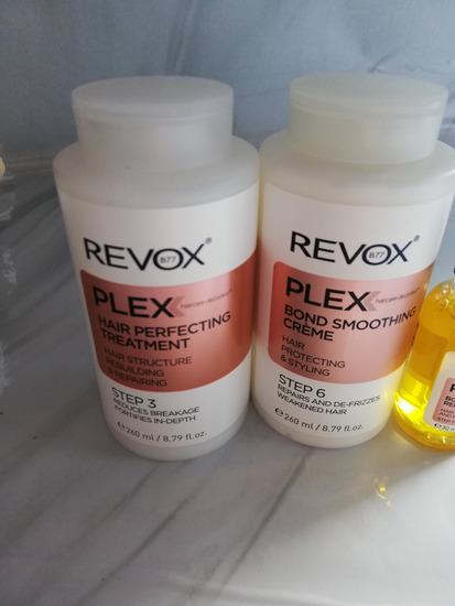 NOV komplet Revox B77 Plex za nego suhih, barvanih in poškodovanih las. KREMA KORAK 3: Za obnovo poškodovanih in barvanih las, gladi lasna vlakna,ščiti pred lomljenjem las, za vse tipe las. Nanesite pred šamponiranjem, 1-3 krat na teden na vlažne, z brisačo posušene lase. 1. Nanesite obilno količino od korenin do konic las in jo enakomerno porazdelite po celotni dolžini las. 2. Po 15-20 minutah temeljito sperite z vodo. 3. Umijte lase s šamponom in nanesite regenerator kot običajno. KREMA KORAK 6: Ta koncentrirana krema, ne potrebuje izpiranja, obnavlja lase in jih ščiti pred škodljivimi zunanjimi dejavniki za podaljšan, eleganten, gladek in sijoč videz las. Lahko jo uporabite kot dodatno nego ob dnevih ko ne perete las ali kot zaključni korak po pranju las. Navodila za uporabo: Uporabite na vlažnih ali suhih laseh. 1. Nanesite majhno količino po dolžini las, pri čemer se izogibajte koreninam. 2. Oblikujte lase kot običajno ali pustite delovati čez noč. 3. nadaljujte z REVOX B77 PLEX BOND OBNOVITVENIM OLJEM (7.KORAK) KORAK 7: Bond repair olje za nego las