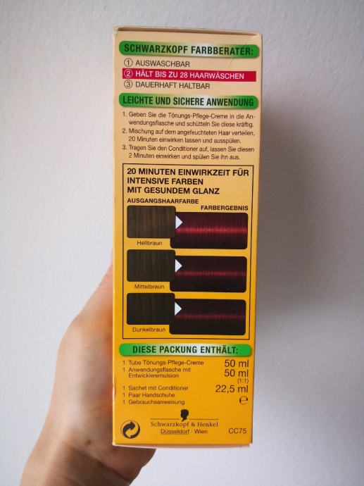 Toner, preliv za lase obstojen 8 tednov, Schwarzkopf country colors, nova zapakirana s slovenskimi navodili, odtenek 75 Madagascar rdeče-rjava. Prodam, ker meni odtenek ne ustreza.