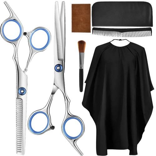 VELIKI SET – celoten set vsebuje 7 elementov. Vključuje frizersko ogrinjalo, ki bo zaščitilo vaša oblačila pred umazanijo med frizerskimi tretmaji. 2 para škarij. Zraven so še glavnik, krtača in krpa za čiščenje škarij. Vse skupaj je zelo uporabno pri striženju in drugih tretmajih za kodranje las.
