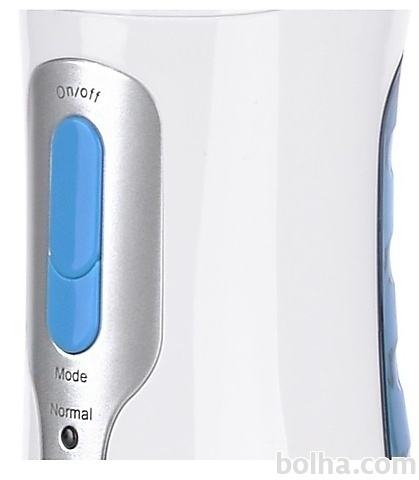Opis:Zobna prha je naprava za vzdrževanje primerne ustne higiene, ki je odlično dopolnilo tradicionalnemu čiščenju in je dobra zamenjava za zobno nitko. Ker se večina bakterij, odgovornih za težave z zobmi in slab zadah, nahaja na območjih, ki so težko dosegljive in v medzobnih prostorih, ročno in električno tradicionalno ščetkanje navadno ne zadostuje za popolno čiščenje. To delo bo odlično opravila Blaupunktova visoko učinkovita zobna prha DIR 501.Odlično čiščenjeNaprava učinkovito odstranjuje nečistoče in bakterije, zahvaljujoč visokemu pritisku vode, ki jo vlijemo v posebno posodo. Naslednji korak je izbira primernega programa, vklop naprave in namestitev nastavka iz katere tekočina izhaja na površino, ki jo čistimo. Primeren pritisk vode bo učinkovito izplaknil nečistoče in ostanke hrane ter poskrbel za čisto ustno votlino in predvsem medzobne prostore. Pritisk se lahko nastavi v območju od 40-90 PSI, učinkovita vodna črpalka omogoča do 1400 pulzov na minuto.3 načini delovanjaDIR501 lahko deluje na 3 načine. Prvi izmed njih – občutljivi zobje, je primeren za osebe z izpostavljenimi zobnimi vratovi in močno občutljivimi zobmi. Vodni curek, ki prihaja iz nastavka ima manj pritiska in ne povzroča draženja dlesni. Drugi način – dnevni je zasnovan za večino uporabnikov saj zagotavlja optimalno delovanje. Zadnji način – pulzni – je sestavljen iz spremenljive moči toka vode, kar omogoča še boljšo učinkovitost.Priročna uporabaNaprava je opremljena z 2-minutnim časovnikom, ki omogoča nadzor časa čiščenja. Trdna konstrukcija in ergonomska oblikazagotavljata udoben oprijem med delovanjem, moden dizajn pa bo navdušil vse, ki cenijo estetiko. Vodna prha je brežzična naprava, ki izboljša udobje uporabe. Rezervoar za vodo 150 ml ne potrebuje pogostega polnjenja.Celovita nega za oralno zdravjeV kompletu sta vključena dva nastavka, ki sta na voljo tudi v ponudbi Blaupunkt dodatne opreme ACC026. Pozabite na zobno nitko in ugotovite, kako učinkovita je zobna prha DIR501 pri čiščenju zob!Lastnosti: Dinamično in učinkovito čiščenje 3 načini delovanja: občutljivi zobje, dnevno, pulzno Časovnik: 2 minuti Brežzična uporabaTehnični podatki: Pritisk vode od 40 do 90 PSI Učinkovita vodna črpalka do 1400 pulzov na minuto Prostoren vodni rezervoar (150 ml)Priloženo: 2 nastavka (možnost menjave, na razpolago dodatki ACC026) Več podatkov si oglejte na tej povezavi...