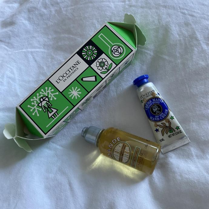Nov komplet L’occitane izdelkov: Mandljevo olje za prhanje 75ml Potovalna krema za roke za suho kožo 10ml
