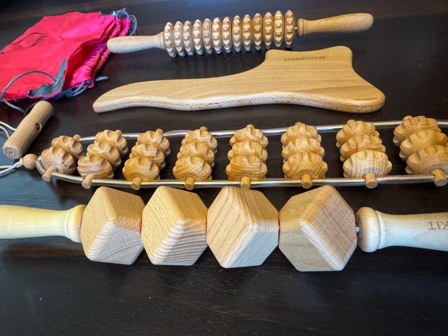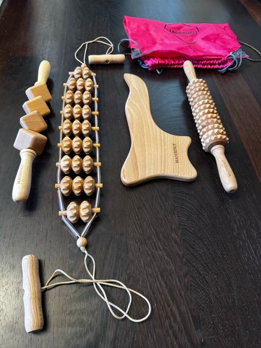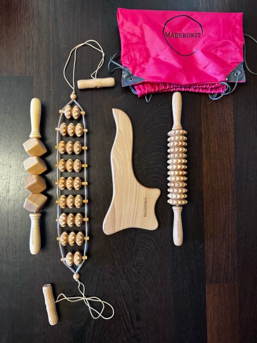 MaderoKit je 4-delni komplet, ki služi kot tvoja bližnjica do postave brez celulita. Vsebuje enake valjčke, kot jih uporabljajo na tretmajih v salonu, anticelulitno olje ter podroben video tečaj za pravilno uporabo.