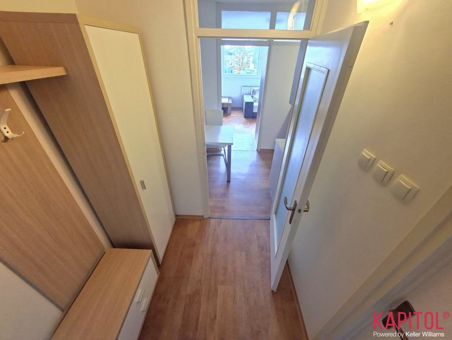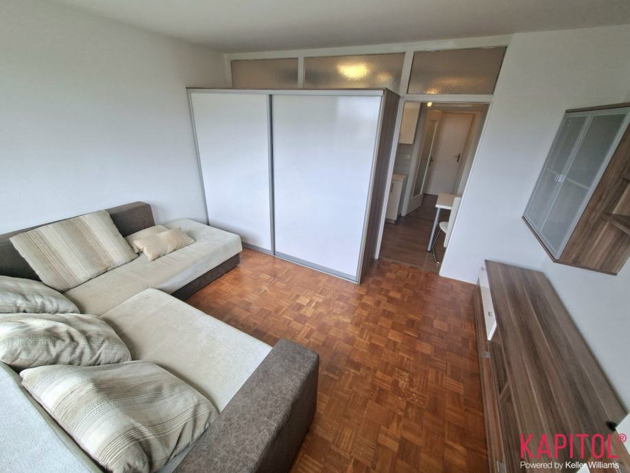 V nakup vam lahko ponudimo manjše vendar zelo funkcionalno stanovanje, ki je s pregradno steno preurejeno v 1-sobni razpored.
