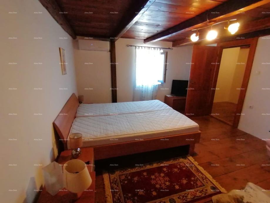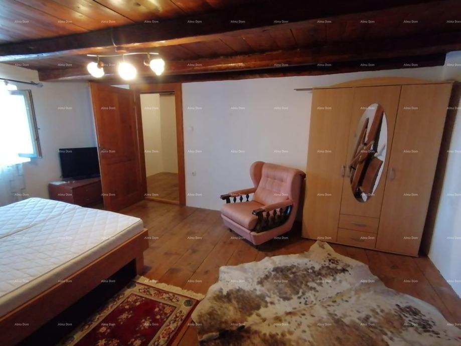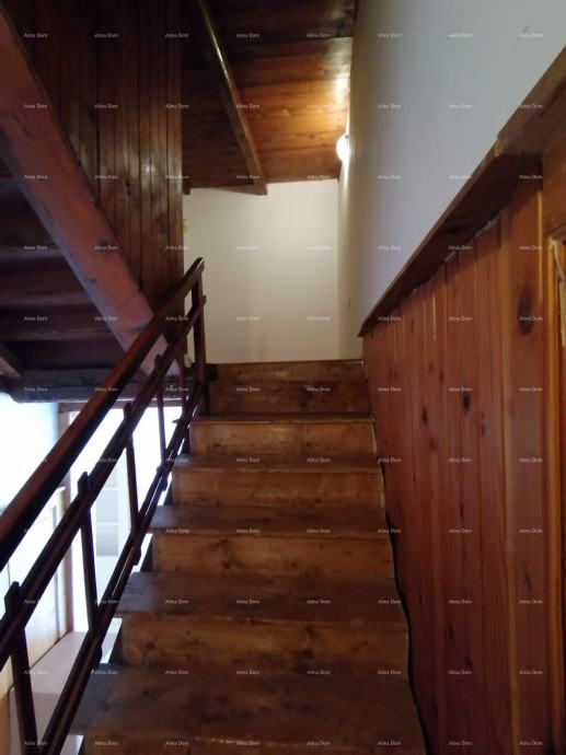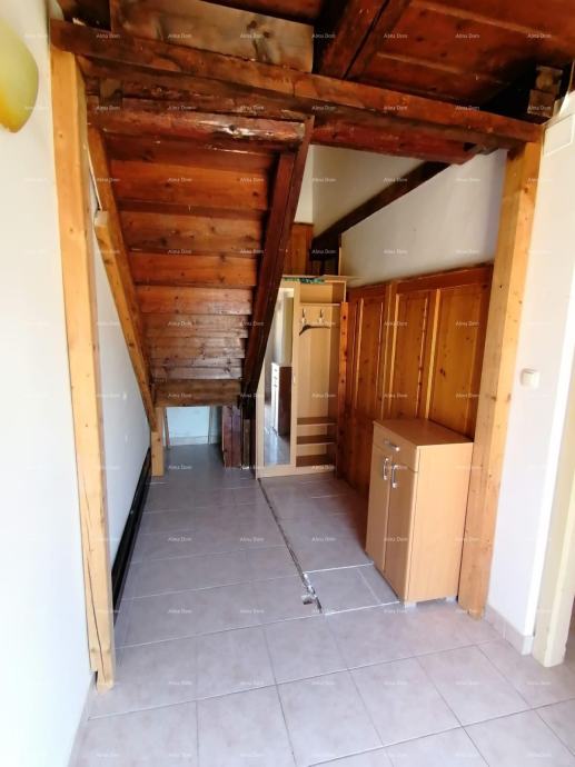 Glavna hiša, cca 80 m2, je sestavljena iz predprostora, kuhinje-dnevne sobe, kopalnice s tušem in WC-jem, v prvem nadstropju velika spalnica in veliko podstrešje.