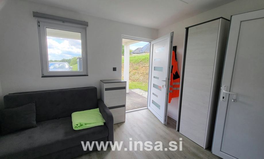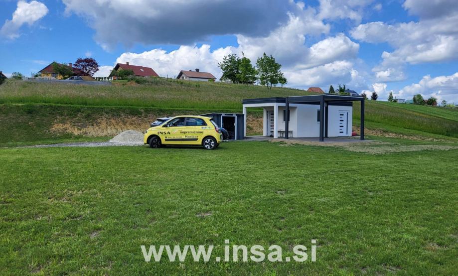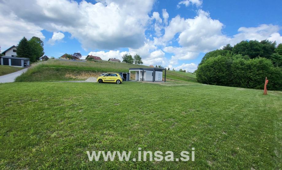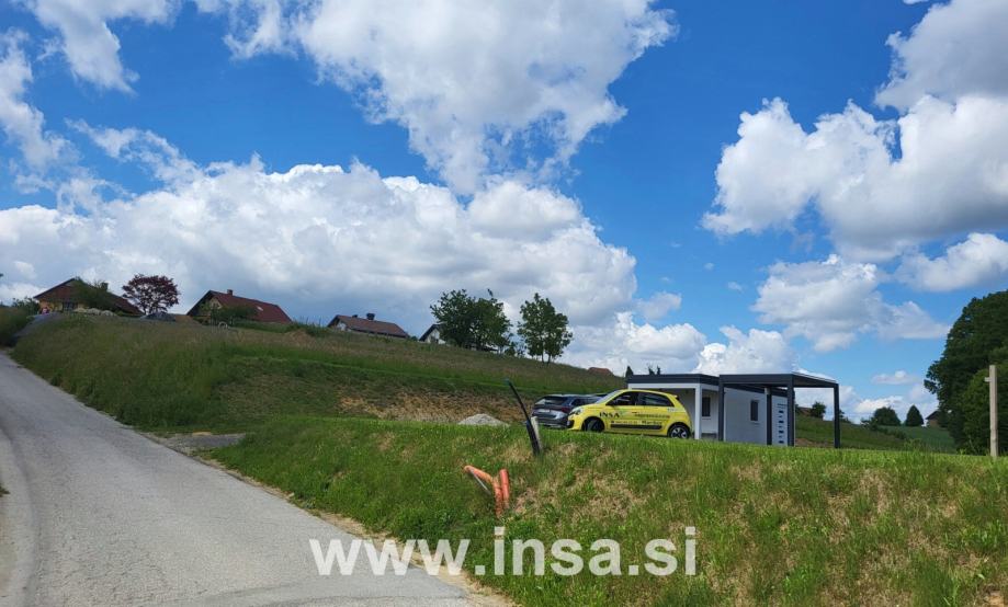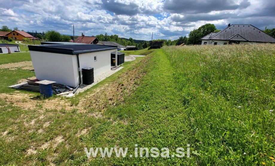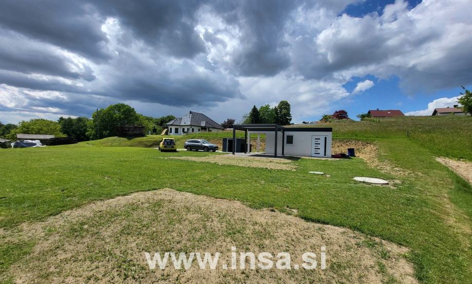 Na urejeni in utrjeni parceli (velikosti 973m2) je postavljen nov mobilni objekt, hiška in nadstrešnica.