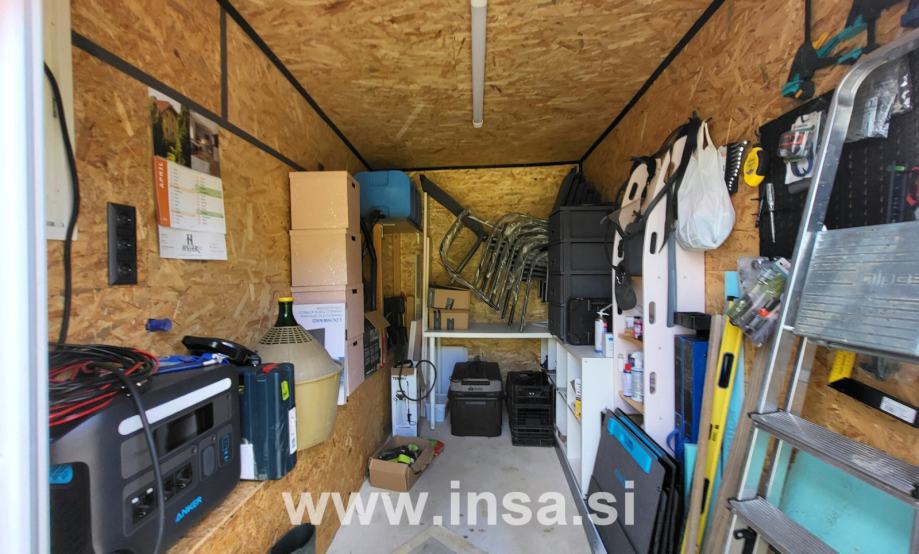Zraven je še priročen skladiščni prostor za shranjevanje orodja, žara in vrtnega pohištva.