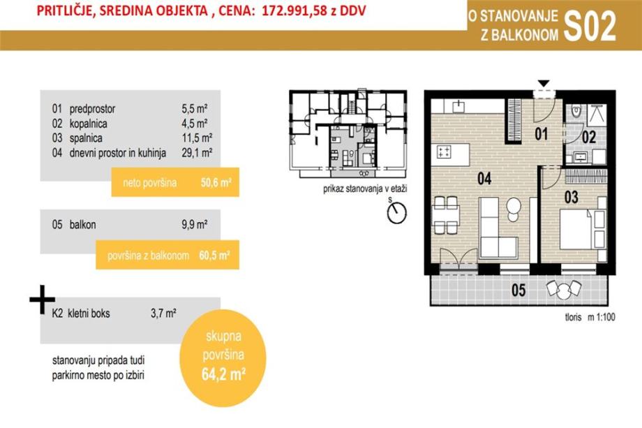➢ Cena nakupa garažnega prostora se doda k ceni stanovanja.