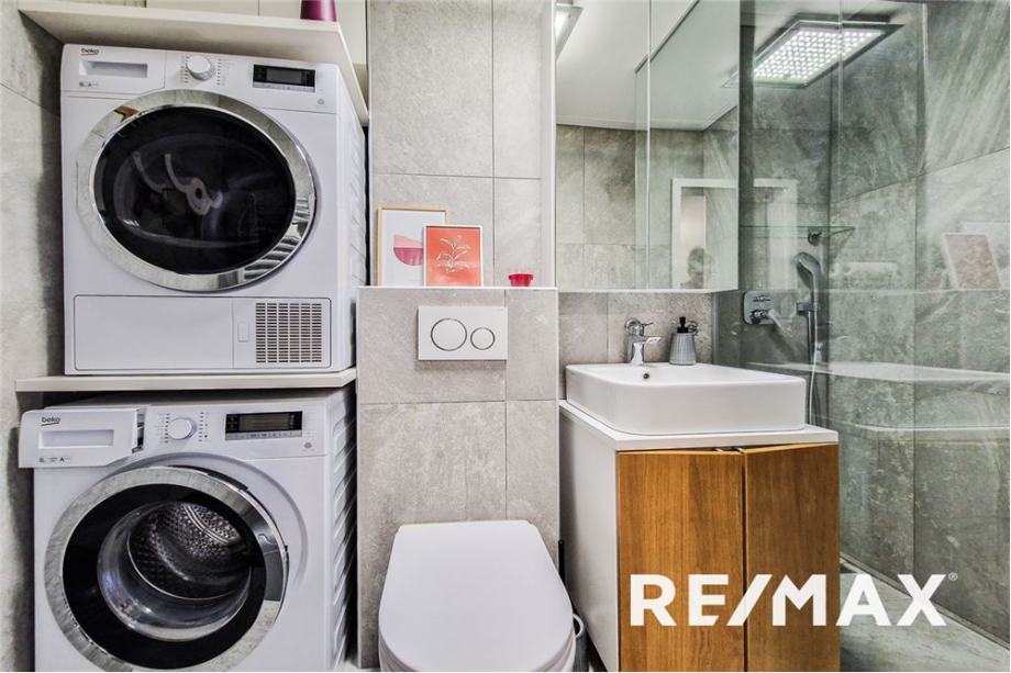 Najemnik bo najel popolnoma opremljeno, moderno stanovanje vključno z vgrajeno klimatsko napravo, tv sprejemnikom, pralnim in sušilnim strojem..