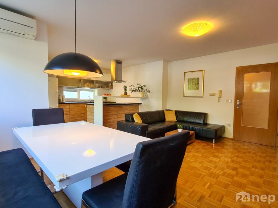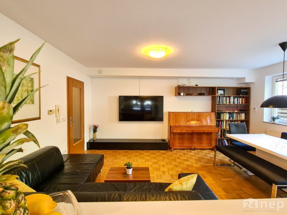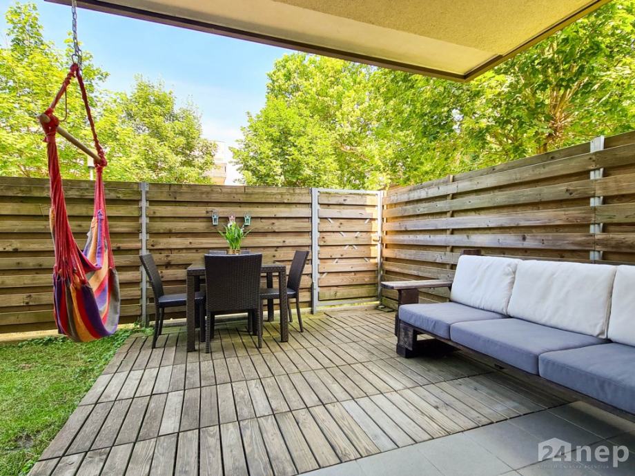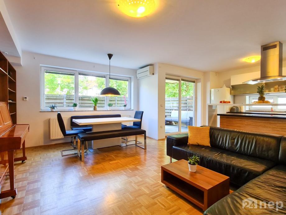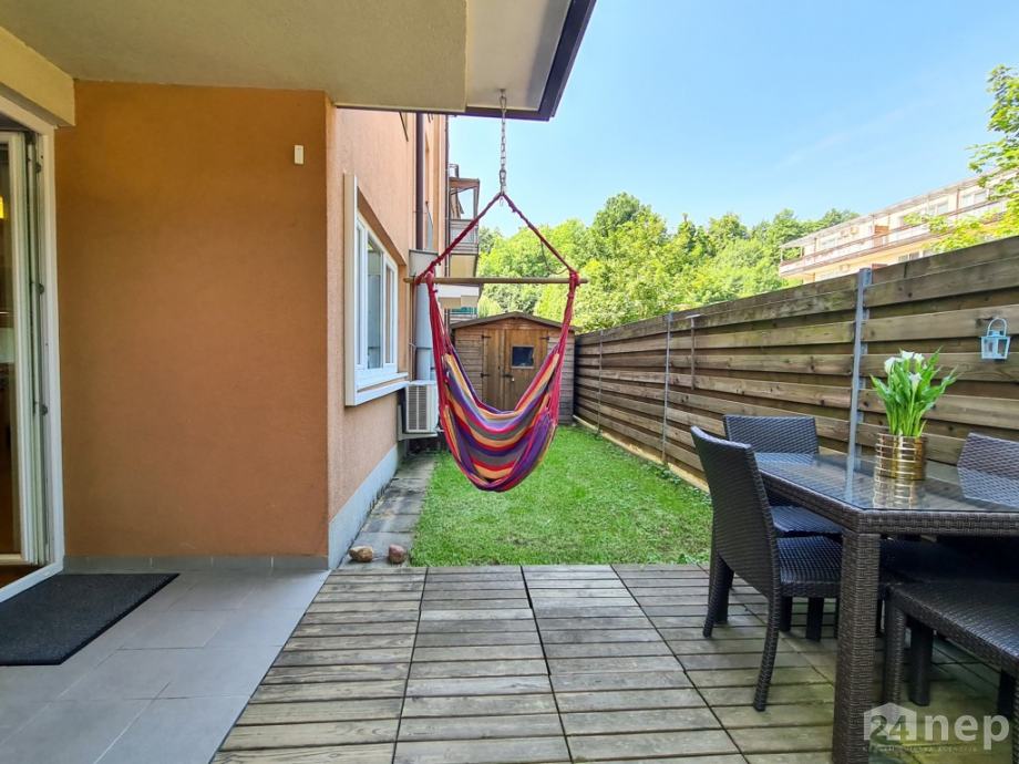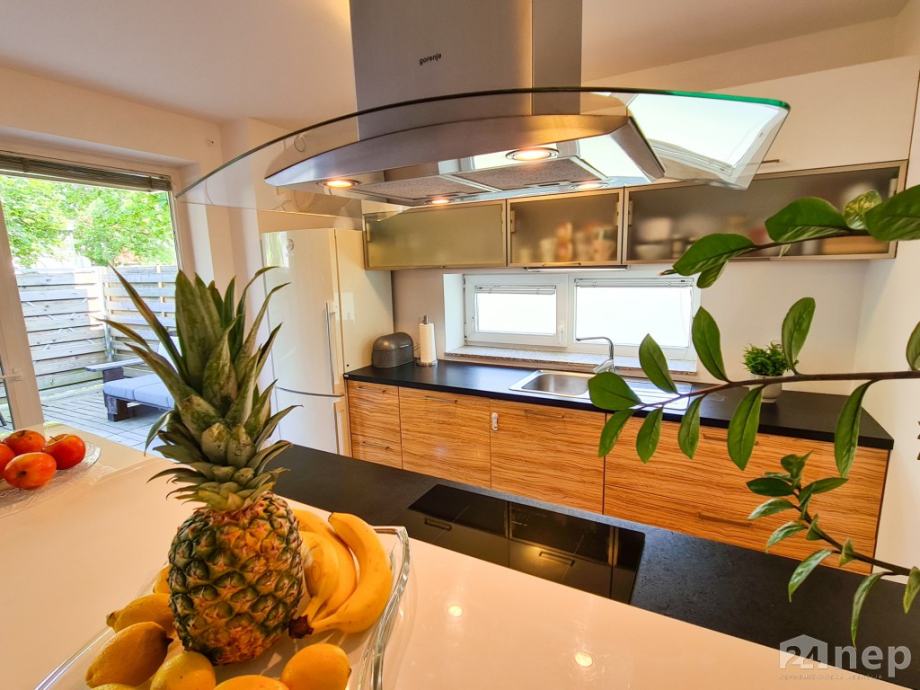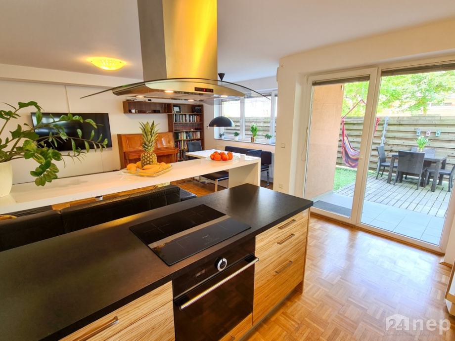 Dodatno: stanovanje ima izvedeno nadstandardno prezračevanje / rekuperacijo in je klimatizirano, na zelenici se nahaja tudi vrtna hiška.
