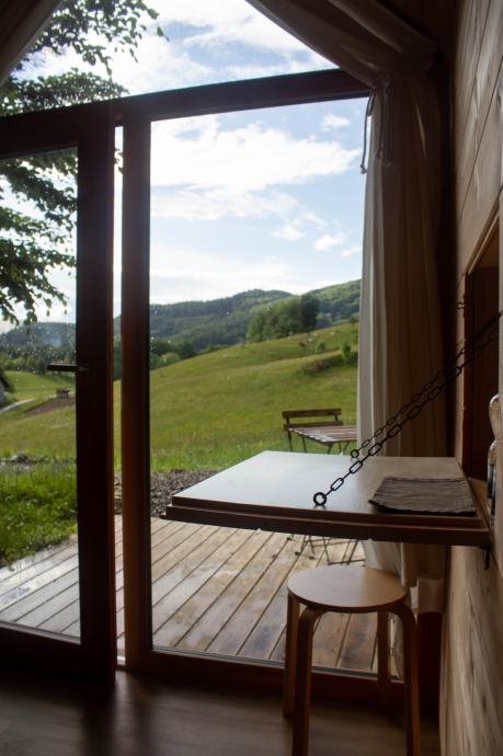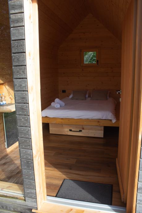 Površina bivalne hišice je 10 m² bruto in 8 m² neto