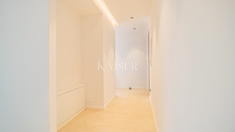 Kaiser immobilien posreduje pri prodaji ekskluzivnega apartmaja na zelo atraktivni lokaciji v mestu Krk. Apartma se nahaja v pritličju dvonadstropne novogradnje, le 400 m od morja. Bivalna površina meri 83 m2 in vključuje odprt koncept z dnevno sobo, kuhinjo in jedilnico, tremi spalnicami, dvema kopalnicama, shrambo in teraso velikosti 84 m2. Apartmaju pripada tudi vrt z 21 m2 velikim bazenom, prostorom za sončenje in prostorom za druženje z vrtnim kaminom. Dodatna posebnost te nepremičnine je prostorna 34 m2 velika klet s kopalnico, prostor, ki ga je mogoče uporabljati za različne namene. Apartmaju pripadata tudi dve parkirni mesti. Pri gradnji in opremljanju so bili uporabljeni vrhunski materiali, zunanje stene so dobro izolirane s 15 cm toplotne izolacije, vgrajena je najkakovostnejša keramika, v sobah so naravni leseni parketi, kamnite stopnice, vrhunski sistem razsvetljave in moderna svetila, talno ogrevanje in hlajenje preko ventilatorskih konvektorjev, ki jih poganjajo toplotne črpalke, masivno aluminijasto stavbno pohištvo z mrežami proti komarjem in električnimi polkni. ID KODA 105-228 Provizija agencije za kupca znaša 3% + DDV in se plača v primeru nakupa nepremičnine, ob sklenitvi prvega pravnega dejanja.