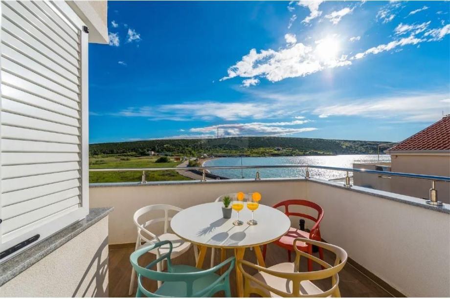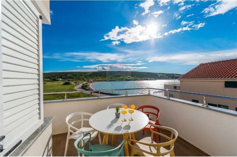 Prodamo dvosobni apartma v Stari Novalji na otoku Pagu, prva vrsta do morja, poleg plaže Planjka. Stanovanje velikosti 45,35 m2 se nahaja v DRUGEM nadstropju stanovanjske stavbe s skupno 8 enotami. Sestoji iz:
