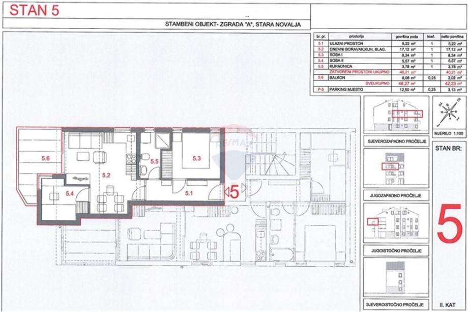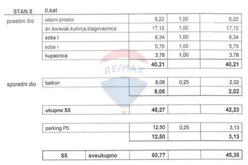 SKUPAJ: 60,77 m2 bruto površina, NETO UPORABNA POVRŠINA 45,35