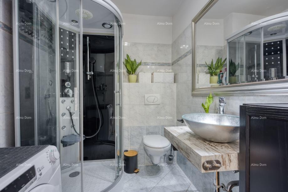 V mirnem naselju Baderna, občina Poreč, se prodaja popolnoma opremljen stan s površino 60 m², ki se nahaja v pritličju stavbe s pripadajočim dvoriščem velikosti 40 m². Poleg tega se na parceli nahaja tudi praktična vrtna hišica velikosti 12 m² ter popolnoma opremljena zunanja kuhinja, idealna za preživljanje časa na prostem v toplejših mesecih.