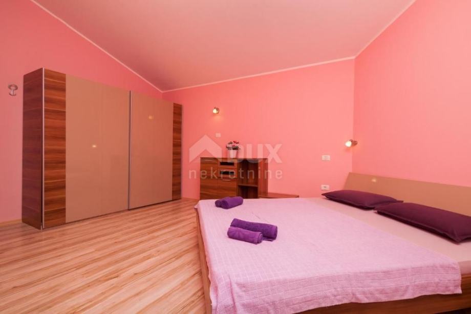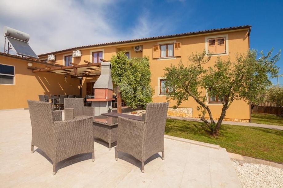 Na najjužnejši točki istrskega polotoka se nahaja obalni biser - mesto Medulin, eden najbolj znanih predstavnikov istrskega turizma. Je središče priljubljene medulinske riviere, zgrajene na ostankih prazgodovinskih naselbin, ki vključuje okoliške zelo privlačne kraje; Premantura, Pješčana Uvala, Pomer, Vinkuran, Vintijan, Valbonaša in Banjole. To območje se ponaša tudi z medulinskim arhipelagom z 11 nenaseljenimi otoki in otočki. V naselju Banjole prodamo hišo velikosti 500m2 zgrajeno na parceli 1381m2, razporejeno v pritličju in nadstropju. Gre za hišo z 9 spalnicami in 7 kopalnicami, velikim vrtom z bazenom in dodatnim neopremljenim prostorom 250m2, ki je povezan s hišo in si ga bodoči lastnik lahko uredi po svojih željah. V pritličju je dnevna soba s kaminom, ki spominja na gostilno, kuhinja, pralnica, wc in shramba povezana z garažo za 3 avtomobile. Notranje stopnišče vodi v prvo nadstropje, kjer je stanovanje s tremi spalnicami in kopalnico. Eno spalnico je mogoče preurediti v dnevno sobo s kuhinjo. V prvem nadstropju hiše, popolnoma ločeno od prej opisanega stanovanja, sta še dva apartmaja. Eno stanovanje obsega dnevno sobo s kuhinjo in jedilnico, eno spalnico, kopalnico in teraso, drugo stanovanje pa obsega kuhinjo z jedilnico, WC, kopalnico, tri spalnice (od katerih ena lahko naj bo dnevna soba) in terasa. . Vsi prostori so klimatizirani, ogrevanje je centralno na plin (lastni rezervoar). Vgrajeni so bili solarni paneli za ogrevanje vode (300L rezervoar). Kamin v pritličju hiše je povezan s centralno kurjavo, tako da se celotno pritličje in stanovanje v nadstropju lahko ogreva preko kamina na drva. Obstaja tudi možnost dokupa dodatne gradbene parcele 968m2, ki se nahaja poleg hiše. Če bodo novi lastniki želeli nepremičnino jemati kot naložbo in jo oddajati v turistične namene, so lokacija, bazen, namestitvene kapacitete in lastno parkirišče zagotovo bonus, ki bo to močno olajšal in zagotovil povrnitev vloženega, ter lansko sezono nepremičnina dosegla odlične rezultate.