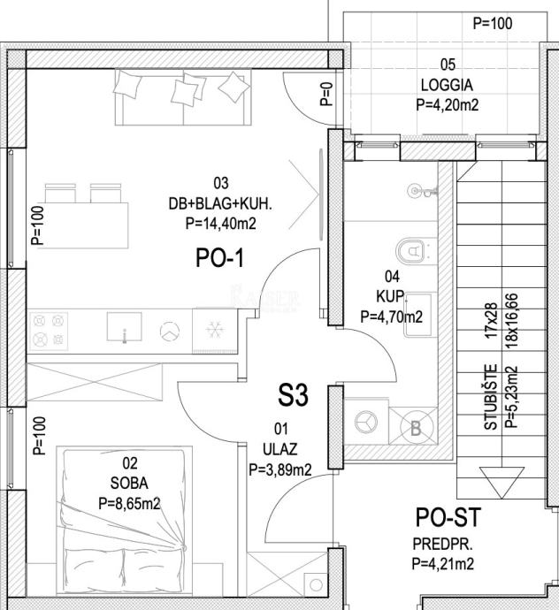 Kaiser Immobilien predstavlja edinstveno priložnost, ki se nahaja v Barbanu. Barban se nahaja na odlični celoletni lokaciji, njegova hitra povezava s celotno Istro vam ponuja peščico možnosti. Labin je oddaljen le 20 minut lahke vožnje, kjer najdete vse potrebne dobrine, kot so supermarket, ambulanta, pošta, banka in mnogi drugi. Pula je oddaljena le 30 minut lahke vožnje in tam najdete številne ugodnosti in turistične atrakcije. Žminj je oddaljen le 20 minut lahke vožnje in vam ponuja številne priložnosti in zanimivosti v samem srcu Istre. Znameniti zaliv Trget in številni drugi divji zalivi in skrite plaže vam bodo dostopni v samo 15 minutah vožnje. Vrtec, šola, restavracija, kavarna, trgovina in bencinska črpalka so v bližini le nekaj sto metrov. Stanovanje se nahaja v stanovanjski stavbi v prvem nadstropju. Obsega 36 m2 bivalne površine namenjene dnevni sobi s kuhinjo in jedilnico ter izhodom na ložo, spalnico in kopalnico. Nepremičnina se prodaja na ključ. Stanovanje bo opremljeno s sanitarijami v kopalnici in vsemi potrebnimi inštalacijami, vključno s klimatsko napravo. Stanovanje se prodaja neopremljeno, kar vam daje veliko možnosti za personalizirano notranjo opremo. Ponuja eno parkirno mesto, vendar je v okolici vedno dovolj prostora za več avtomobilov. Edinstvena priložnost za nakup novogradnje na odlični celoletni lokaciji. Za več informacij kontaktirajte agenta.