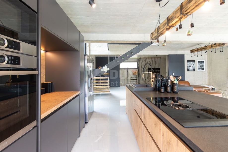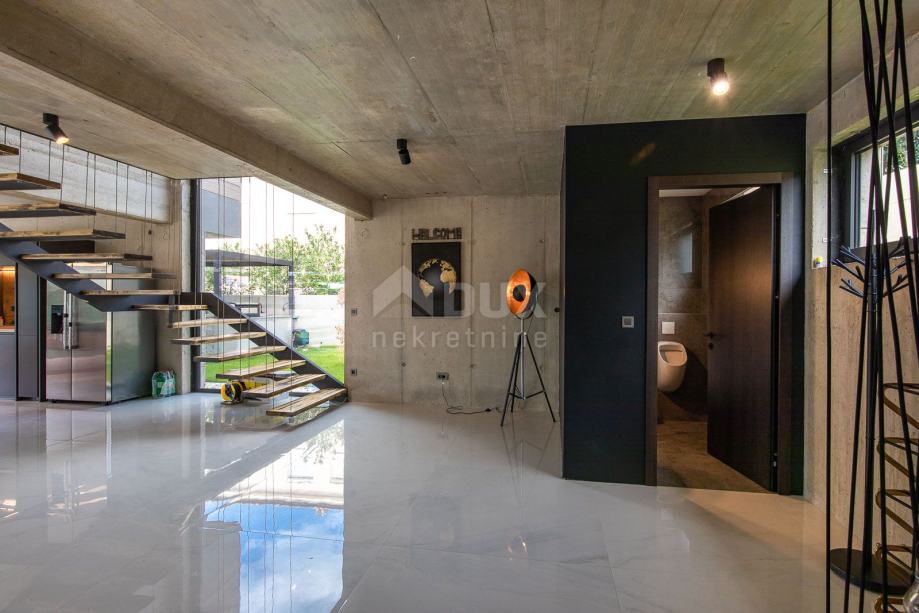 Ponudili smo vam to čudovito urbano dizajnersko vilo v celoti in luksuzno opremljeno z vsemi detajli, ki bodo s svojo notranjostjo in zunanjostjo ustrezali najvišjim standardom. Vila je sestavljena iz treh nadstropij. V kleti se nahaja igralnica s TV, wellness (finska savna, jacuzzi, tuš) fitnes, kurilnica z bazenom strojnica in toplotne črpalke znamke Daikin x 2 kom. za talno ogrevanje in talno hlajenje, skladiščenje, pralnico s pralnim in sušilnim strojem. V pritličje vodi notranje in zunanje stopnišče. V pritličju je WC, dnevna soba in kuhinja z jedilnico, ki se odpira na prostorno delno pokrito teraso in bazen. Ob hiši je zunanja pokrita kuhinja s plinskim žarom in prostorom za druženje. Prvo nadstropje je sestavljeno iz 4 spalnic z lastnimi kopalnicami. Celotna tla izžarevajo sodobno eleganco v industrijskem slogu. Dve sobi imata izhod na lep in dolg balkon s pogledom na naravo in zelenje. Celotna vila je okrašena z vrhunskimi materiali in neustavljivo kombinacijo rahlo hladnih barv, ki so dodatno izolirane z lesenimi elementi in toplimi detajli, ki naredijo to notranjost čudovito. Posebnost te nepremičnine so poleg vrhunskih materialov in razkošja steklene stene z nizkoprofilnimi okvirji, ki omogočajo stik med notranjostjo in zunanjim prostorom. Stopnišče je opremljeno s stekleno steno, ki je tretja največja na Hrvaškem. Vila ima nizkotemperaturno talno ogrevanje in hlajenje z uporabo toplotnih črpalk in ventilatorskih konvektorjev (3,5kW) v vsaki od 4 sob plus 3 v dnevni sobi (10kw). Regulacija ogrevanja in hlajenja posebej za vsak prostor in vsako nadstropje s svojimi termostati. Stopnice in jedilna miza po meri, lestenci, savna in masažna kad v wellnessu po meri, Schuco fiksno in kopalniško mizarstvo, ave proizvajalec drsnih sten Otima minimal okvir, Natuzzi usnjeno pohištvo, kuhinja Dan Kucheni kotlovnica 80% bakra in skoraj 100% izoliran. Tehnike v bazenu vključujejo plavanje v protitoku Hugo Lame, masažne curke, elektrolizo s soljo. Bazen je zasnovan kot preliv, tako da ima avtomatsko dolivanje vode. Čiščenje filtra je tudi avtomatsko (reguliran tlak). Vgrajen je sistem za čiščenje vode. Bazen se ogreva z lastno toplotno črpalko in je pokrit z roleto "v zemljo" (zdrži med 20 in 30 kg) Celotna notranja keramika in fasadna keramika je priznanega italijanskega proizvajalca IMOLA. Zunanja in bazenska keramika eden najboljših španskih dobaviteljev bazenske keramike ROSA GRESS. Trato namakamo s škropilnim sistemom in kapljičnim namakanjem (za rastline). Vrtnarstvo je lepo oblikovano; posajene so bile palme, oljke bonzai, cedre. Osvetlitev vrta je avtomatska preko Photo-eye z možnostjo omejitve dolžine osvetlitvenega dela. Vse sobe so opremljene s TV z anteno, satelitsko in IPTV povezavo. Prezračevana keramična fasada. Solarni sistem s sistemom zaščite pred pregrevanjem (Vismann, patentirano samozatemnitev). Poleg tega, da se keramična fasada s svojo lepoto vizualno vklopi v prostor, je razlog za izbiro tudi v njeni odpornosti na podnebne in druge mehanske vplive. Ima 4 zunanja pokrita parkirna mesta. Na strešno teraso so nameščeni sončni paneli in obstaja možnost izdelave strešne terase s pogledom na morje. Novi lastniki bodo v celoti uživali vse prednosti tako luksuzno opremljene vile. Lastnik nepremičnine je pravna oseba. Za vse dodatne informacije pokličite agentko Andreo Linić Kundijo +385 98 138 4302