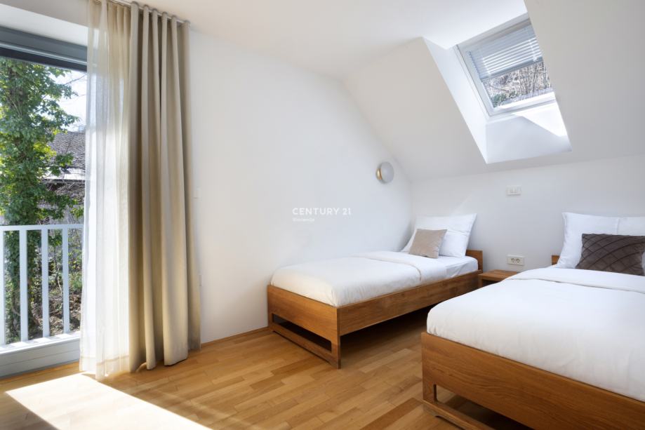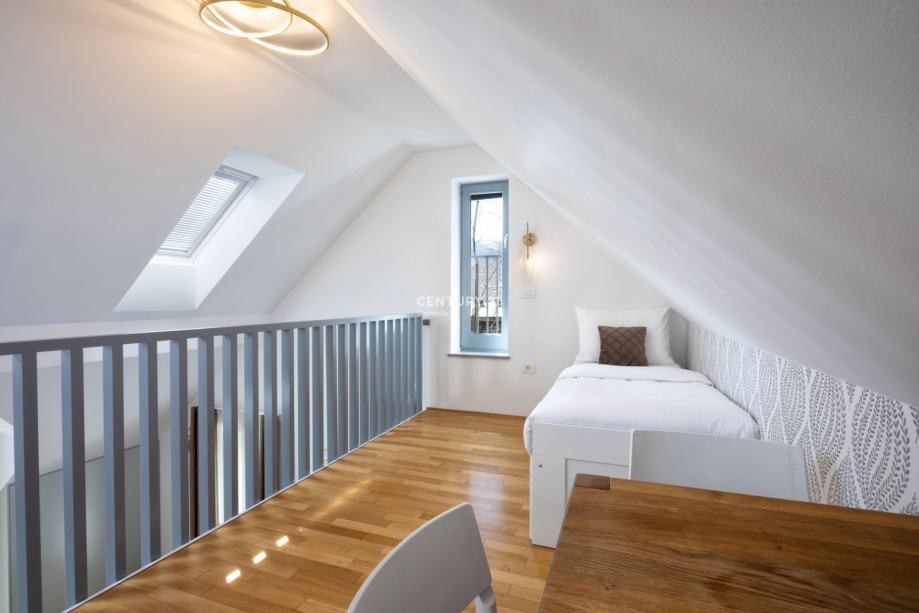 V tretji etaži se nahajata dvoposteljna soba in prostorna, svetla spalnica, obe z balkonom. Nad spalnico se v četrti etaži nahaja galerija, ki ponuja prostor za dve ležišči s francoskim balkonom. Tretja etaža obsega tudi kopalnico z WC-jem in hodnik. K stanovanju pripadata tudi skupni hodnik in skupni tehnični prostor.
