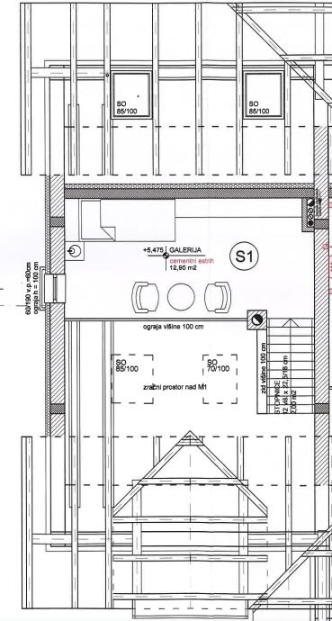 Nepremičnina je opremljena s toplovodnim talnim gretjem na plin. Klimatizirana je s klimatskimi napravami v spalnici, galeriji, dvoposteljni sobi in dnevni sobi, kjer je tudi možnost namestitve kamina. Klimatske naprave zagotavljajo tako hlajenje kot ogrevanje. Okna so lesena, dvoslojna in opremljena z zunanjimi električnimi žaluzijami, medtem ko so strešna okna opremljena z notranjimi pliseji. Vhodna vrata so masivna in protivlomna. Talne obloge so parket in keramične ploščice v kopalnici, WC-ju in vhodnem prostoru.