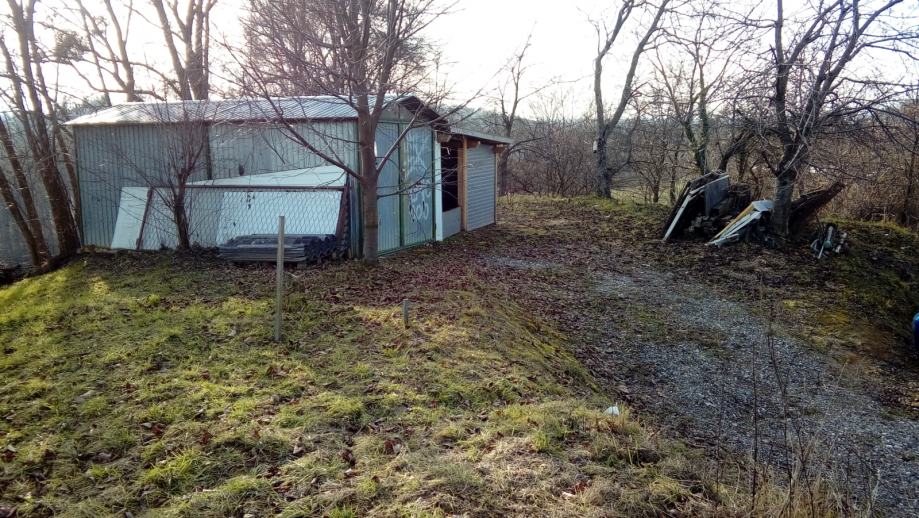 Na parceli so trije objekti: klet, vrtna lopa in lesena brunarica