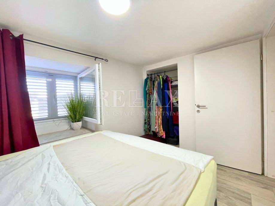V prvem nadstropju se nahaja stanovanje s površino 58,68 m², z dvema spalnicama, prijetno dnevno sobo, popolnoma opremljeno kuhinjo in velikim odprtim prostorom z jedilnico. Kopalnica je popolnoma opremljena, dodatni prostor za shranjevanje pa je zagotovljen s shrambo. Terasa ponuja dodatni zunanji prostor za sprostitev.